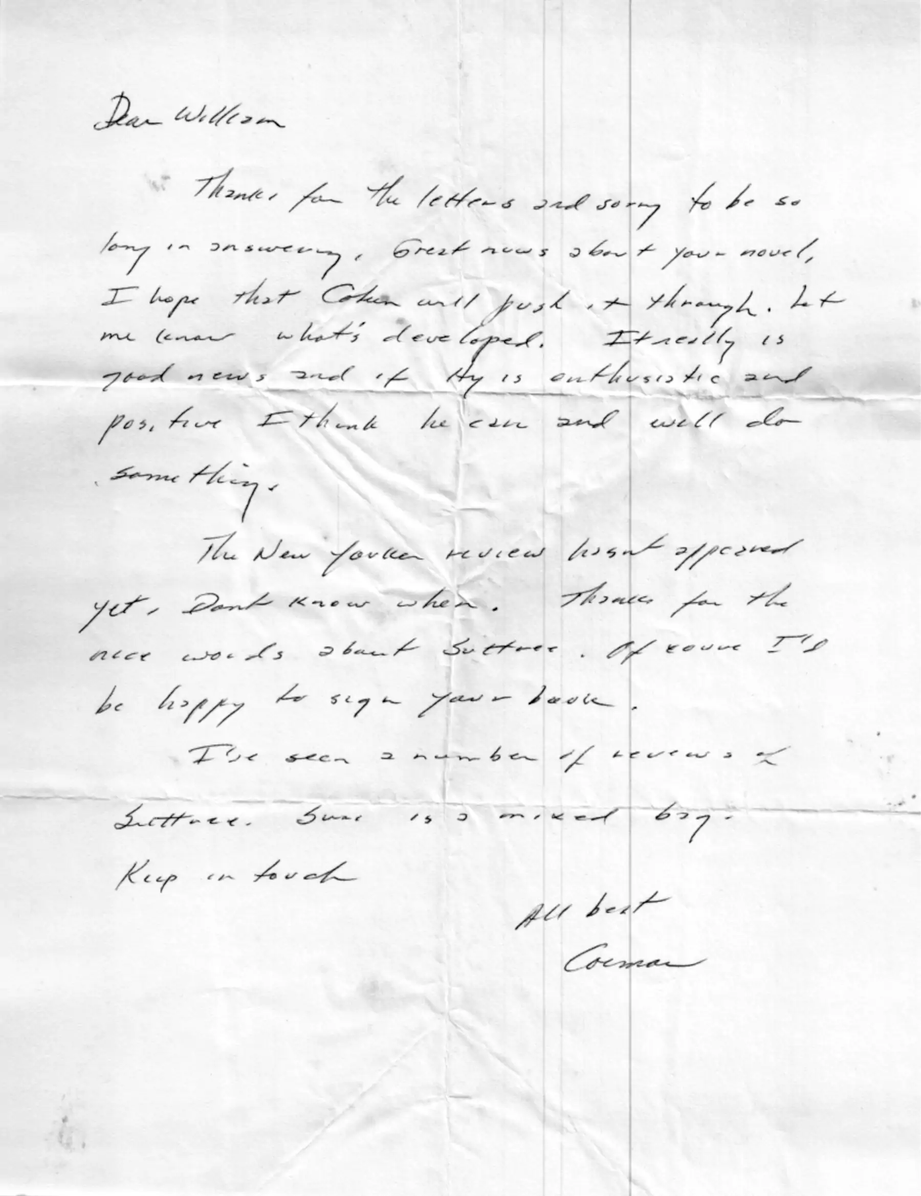 Below are scans of the Cormac McCarthy letters that are in the archive at this time.